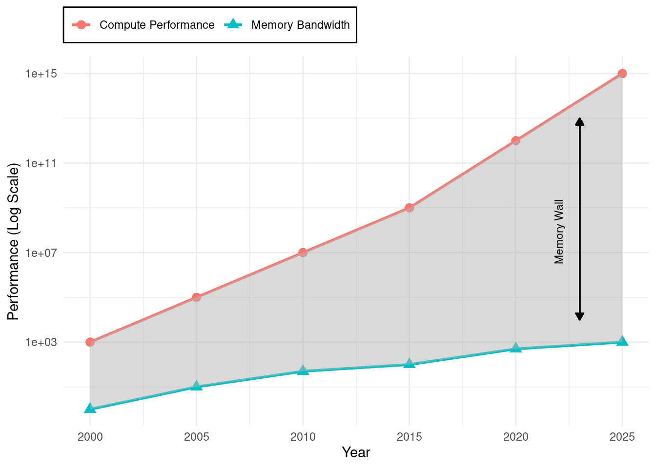 11 Memory Bandwidth: The rate at which data can be transferred between memory and processors, measured in GB/s or TB/s. AI workloads are often bandwidth-bound rather than compute-bound. NVIDIA H100 provides 3.35 TB/s (approximately 40\(\times\) faster than typical DDR5-4800 configurations at ~80 GB/s) because neural networks require constant weight access, making memory bandwidth the primary bottleneck in many AI applications.