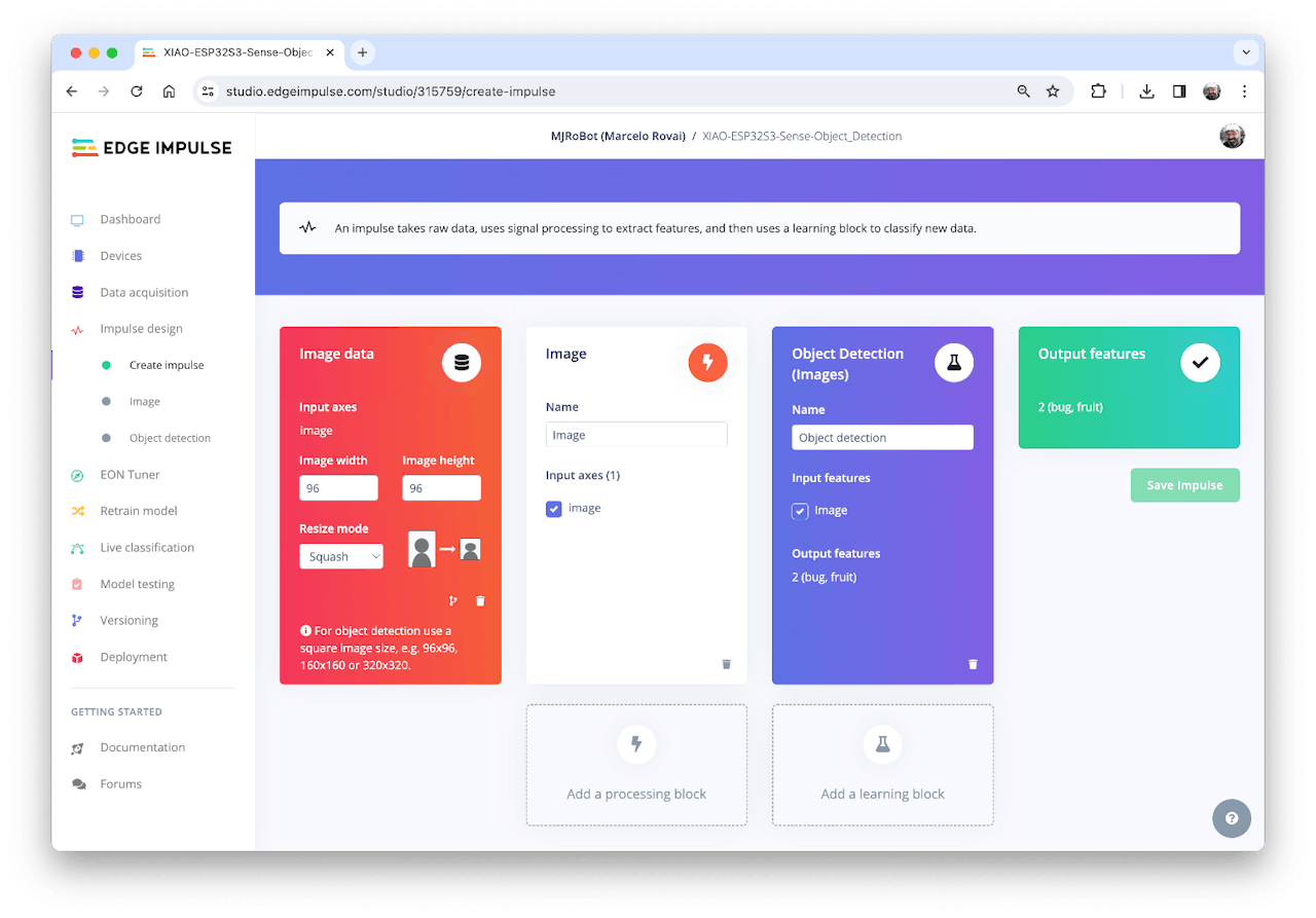 We will develop the project using the XIAO ESP32S3 for image capture and model inference. The ML project will be developed using the Edge Impulse Studio. But before starting the object detection project in the Studio, letâs create a raw dataset (not labeled) with images that contain the objects to be detected.