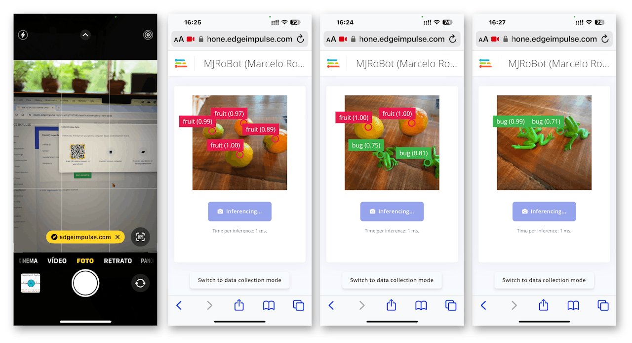 Once connected, you can use the smartphone to capture actual images to be tested by the trained model on Edge Impulse Studio.