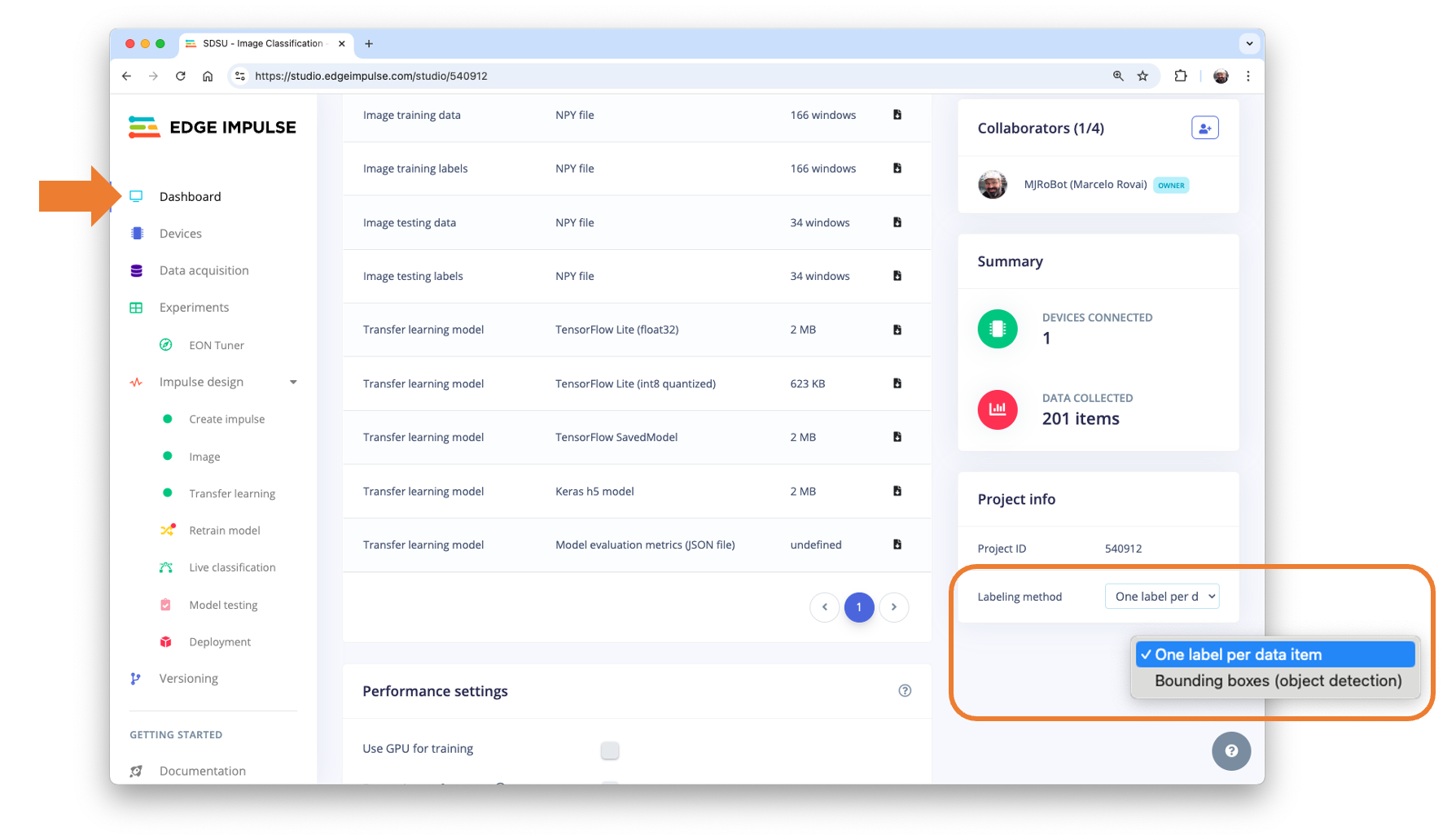 We can always change it in the Dashboard section: One label per data item (Image Classification):