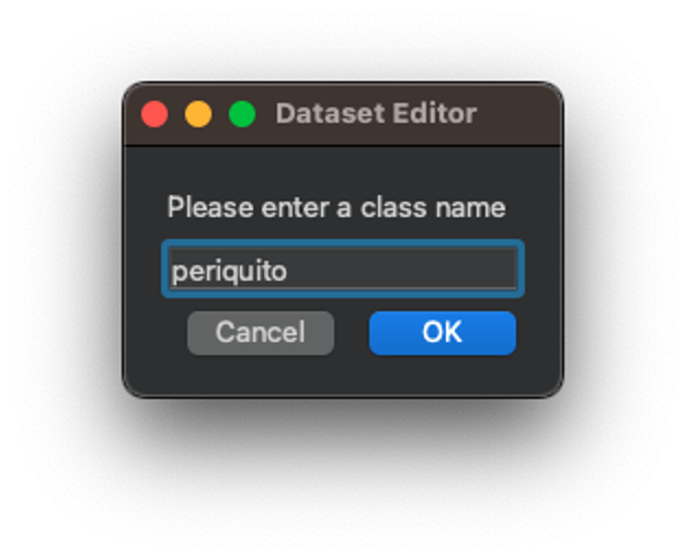 Using the upper icon (1), enter with the first class name, for example, “periquito”: