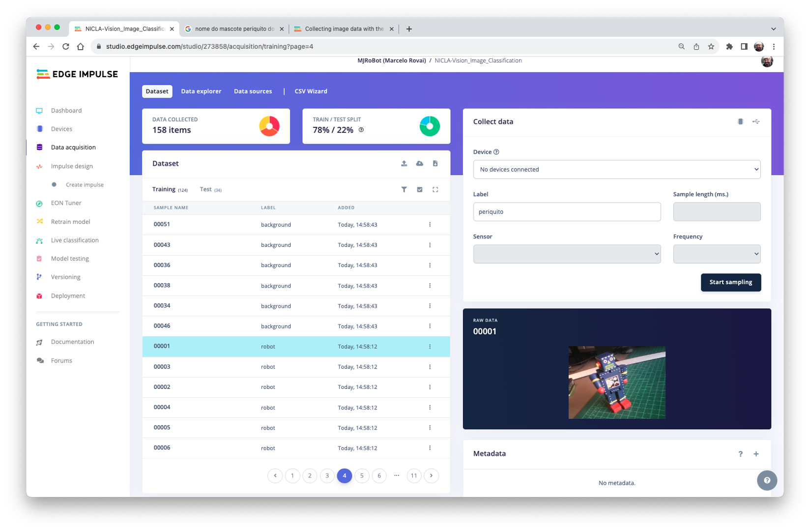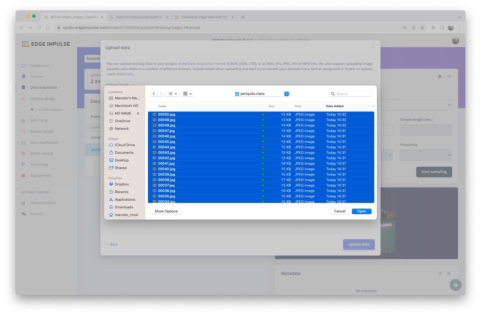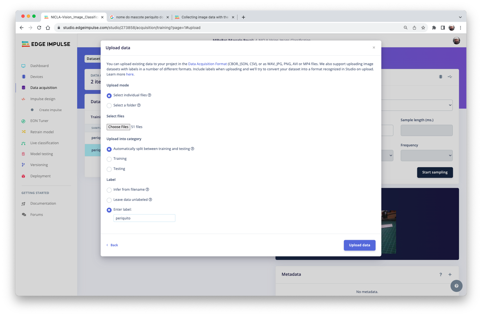 We should return to Edge Impulse Studio and upload the dataset to our created project.