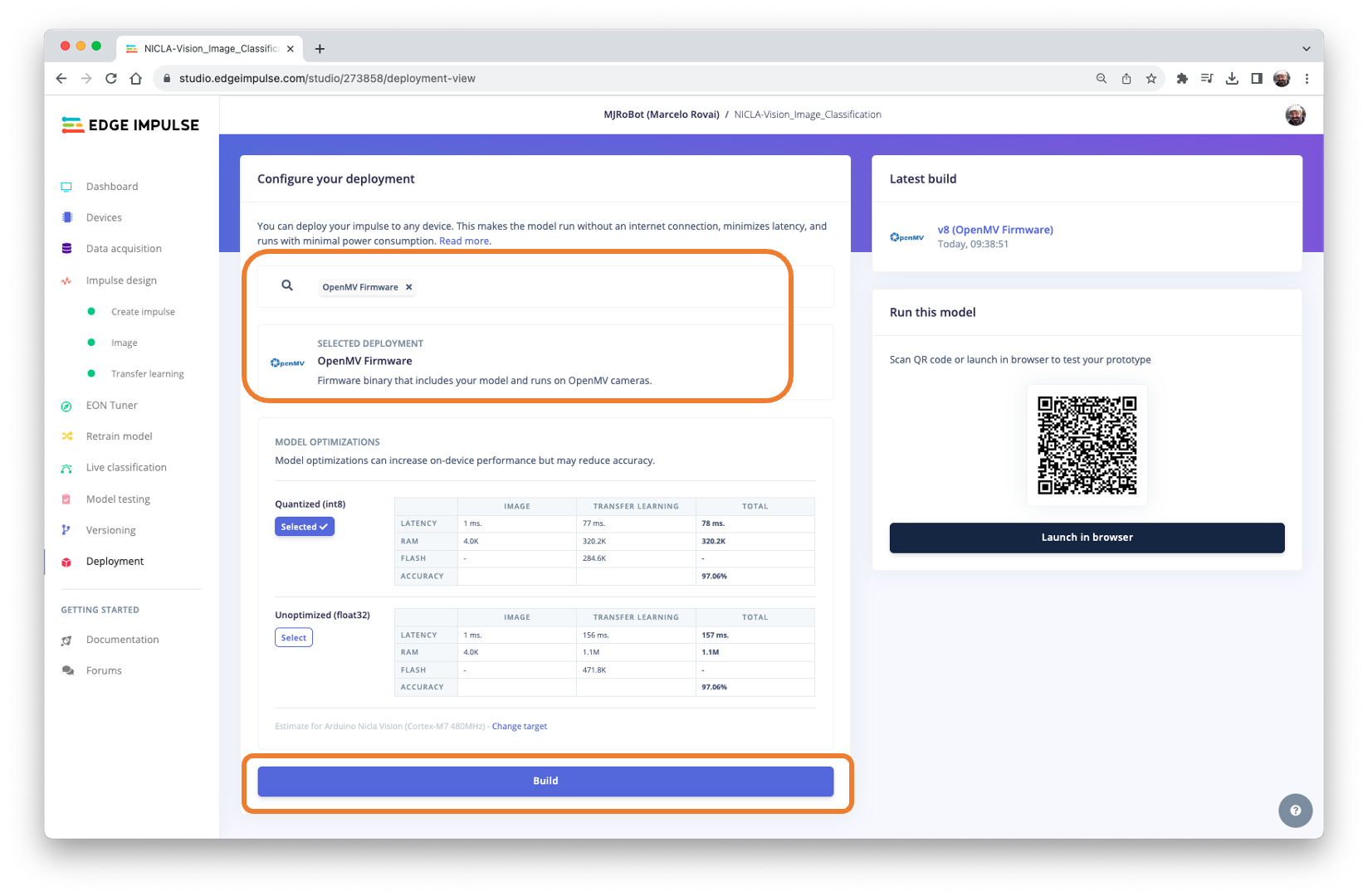 Select OpenMV Firmware on the Deploy Tab and press [Build].
