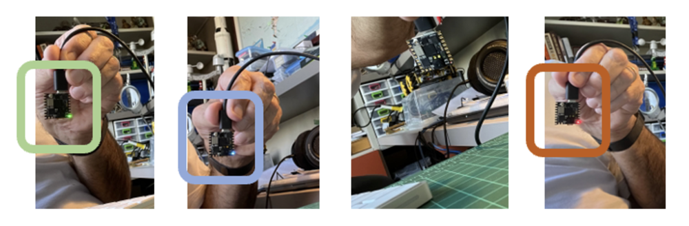 When working with embedded machine learning, we are looking for devices that can continually proceed with the inference and result, taking some action directly on the physical world and not displaying the result on a connected computer. To simulate this, we will light up a different LED for each possible inference result.