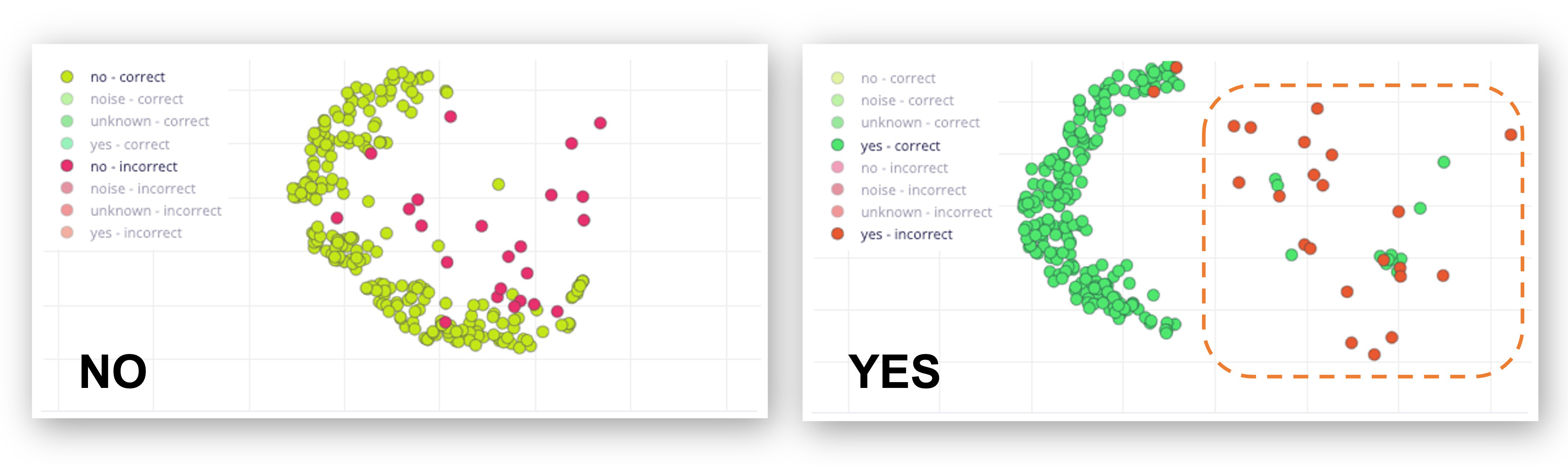 For NO, we got 0.72, which was expected, but to improve this result, we can move the samples that were not correctly classified to the training dataset and then repeat the training process.