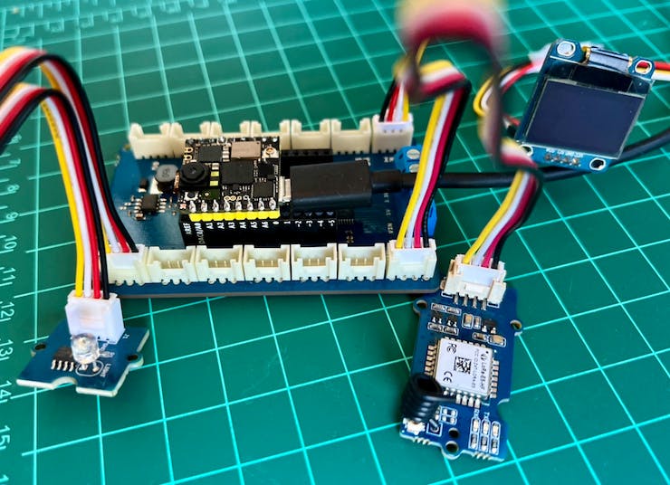 For example, suppose that on a TinyML project, you want to send inference results using a LoRaWAN device and add information about local luminosity. Often, with offline operations, a local low-power display such as an OLED is advised. This setup can be seen here: