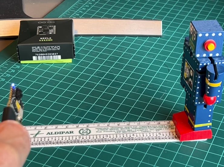 On the Serial Monitor, you will see the distance from the camera to an object in front of it (max of 4 m).