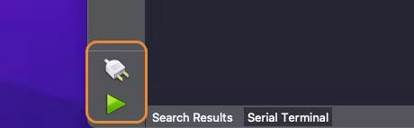 A green play button appears when the Nicla Vison connects to the Tool Bar.
