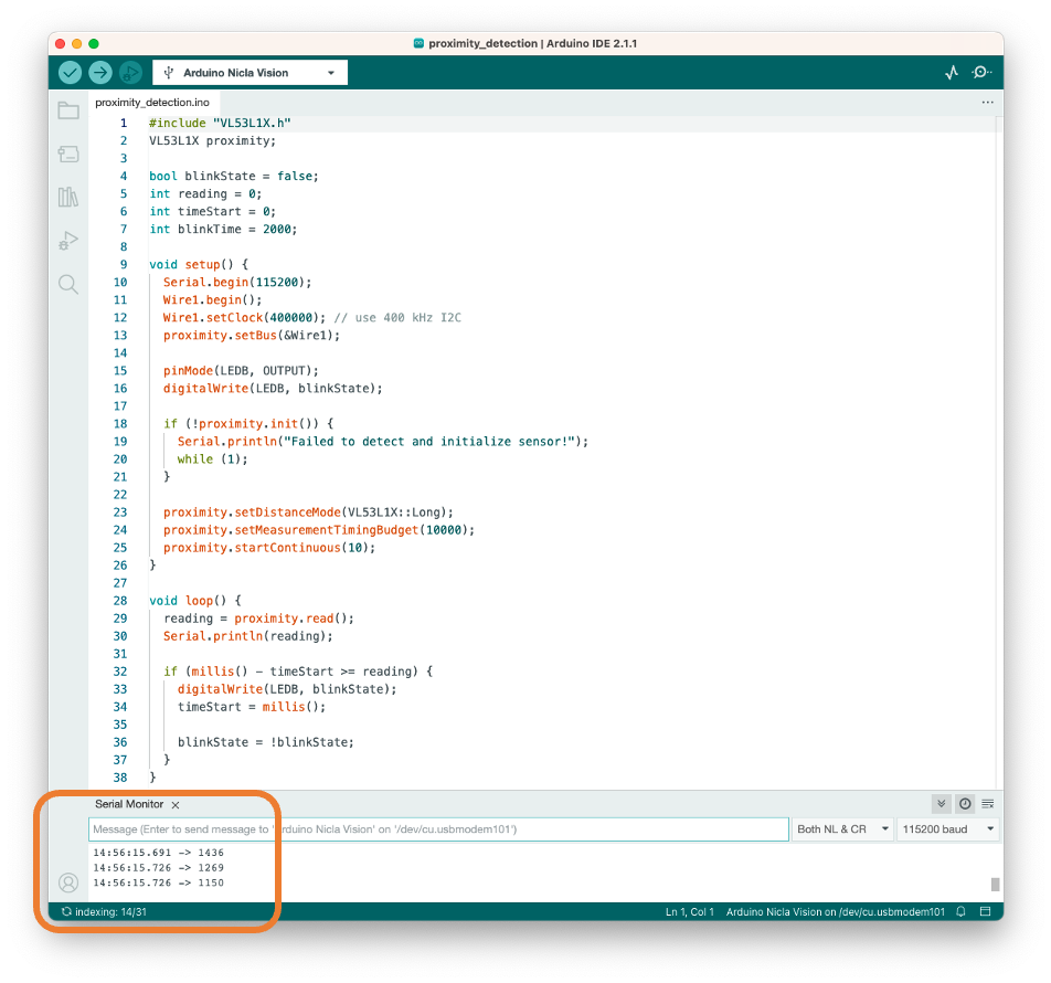 Next, run the sketch proximity_detection.ino: