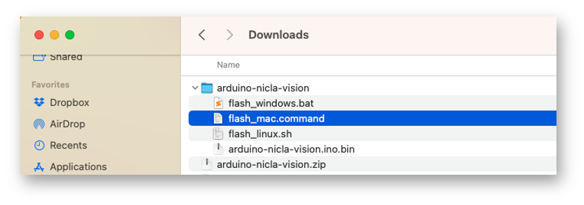 - Executing the specific batch code for your OS will upload the binary arduino-nicla-vision.bin to your board.