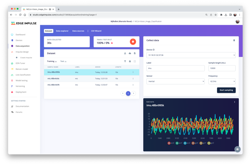 We will need the Edge Impulse Studio later in other labs. Edge Impulse is a leading development platform for machine learning on edge devices.