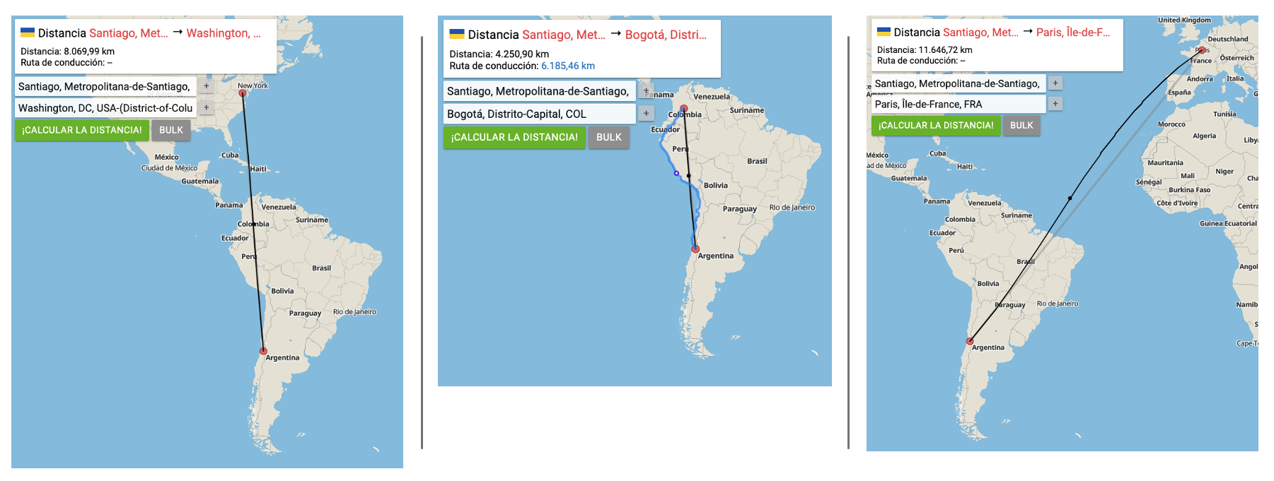 The 1B model answered 9,841 kilometers (6,093 miles), which is inaccurate, and the 3B model answered 7,300 miles (11,700 km), which is close to the correct (11,642 km).