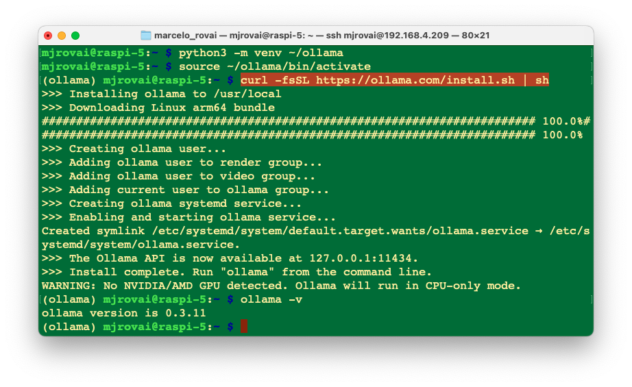 source ~/ollama/bin/activateAnd run the command to install Ollama: