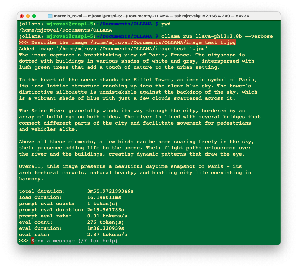 This lab has demonstrated how a Raspberry Pi 5 can be transformed into a potent AI hub capable of running large language models (LLMs) for real-time, on-site data analysis and insights using Ollama and Python. The Raspberry Pi’s versatility and power, coupled with the capabilities of lightweight LLMs like Llama 3.2 and LLaVa-Phi-3-mini, make it an excellent platform for edge computing applications.