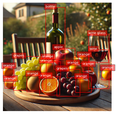 It is important to note that after fine-tuning, the model can still detect classes that don’t belong to our custom dataset, like cats, dogs, grapes, etc, as seen before).