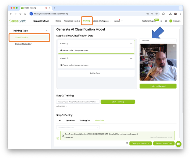 Image Classification on the SenseCraft AI Workspace