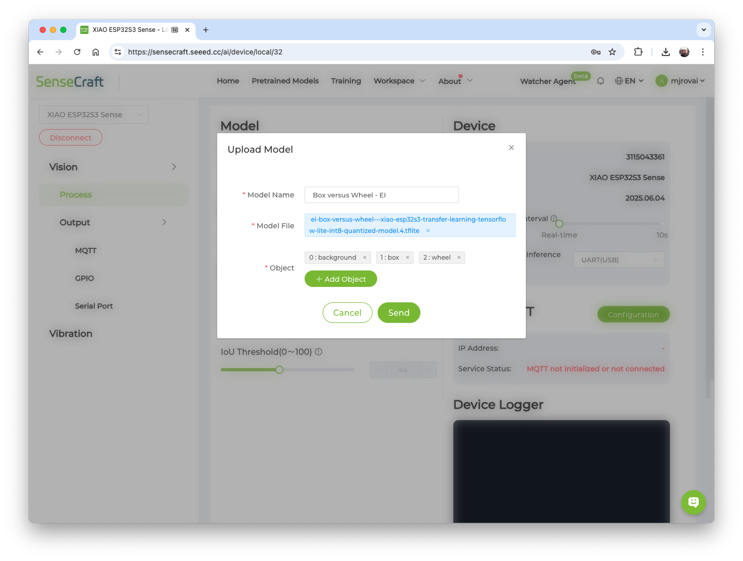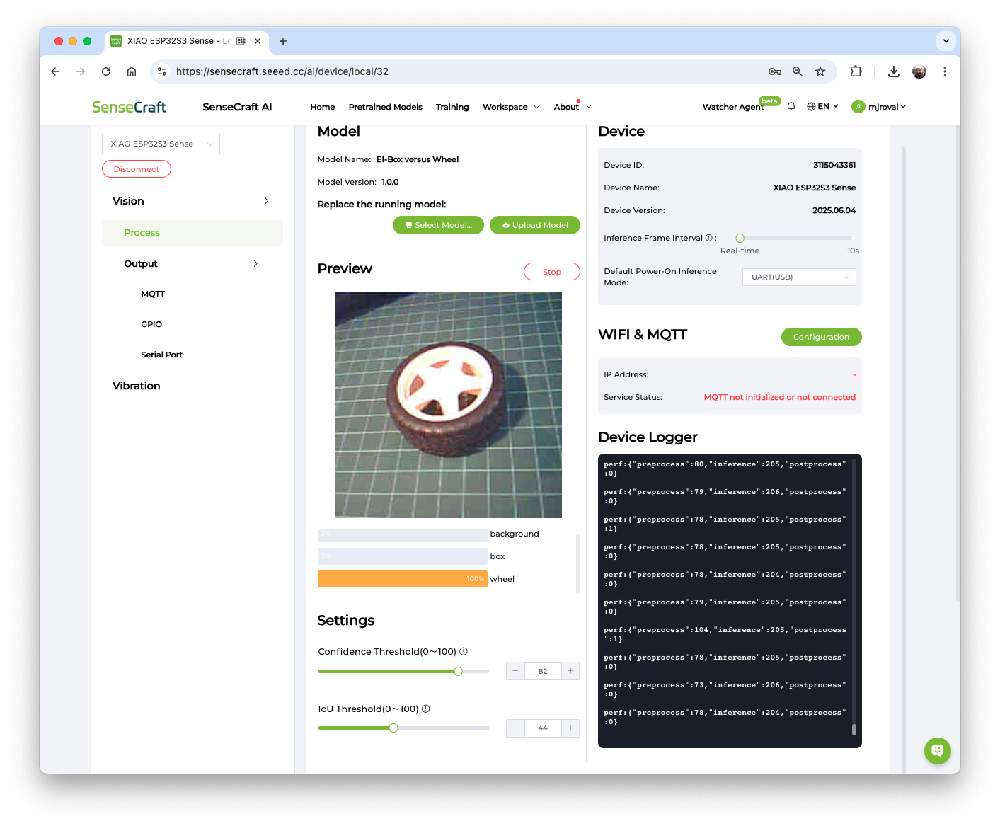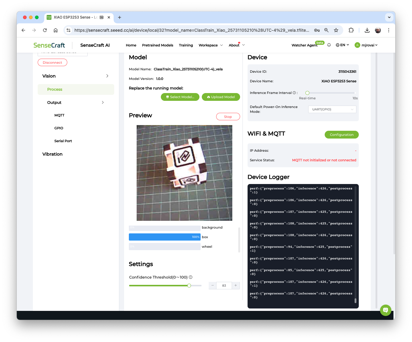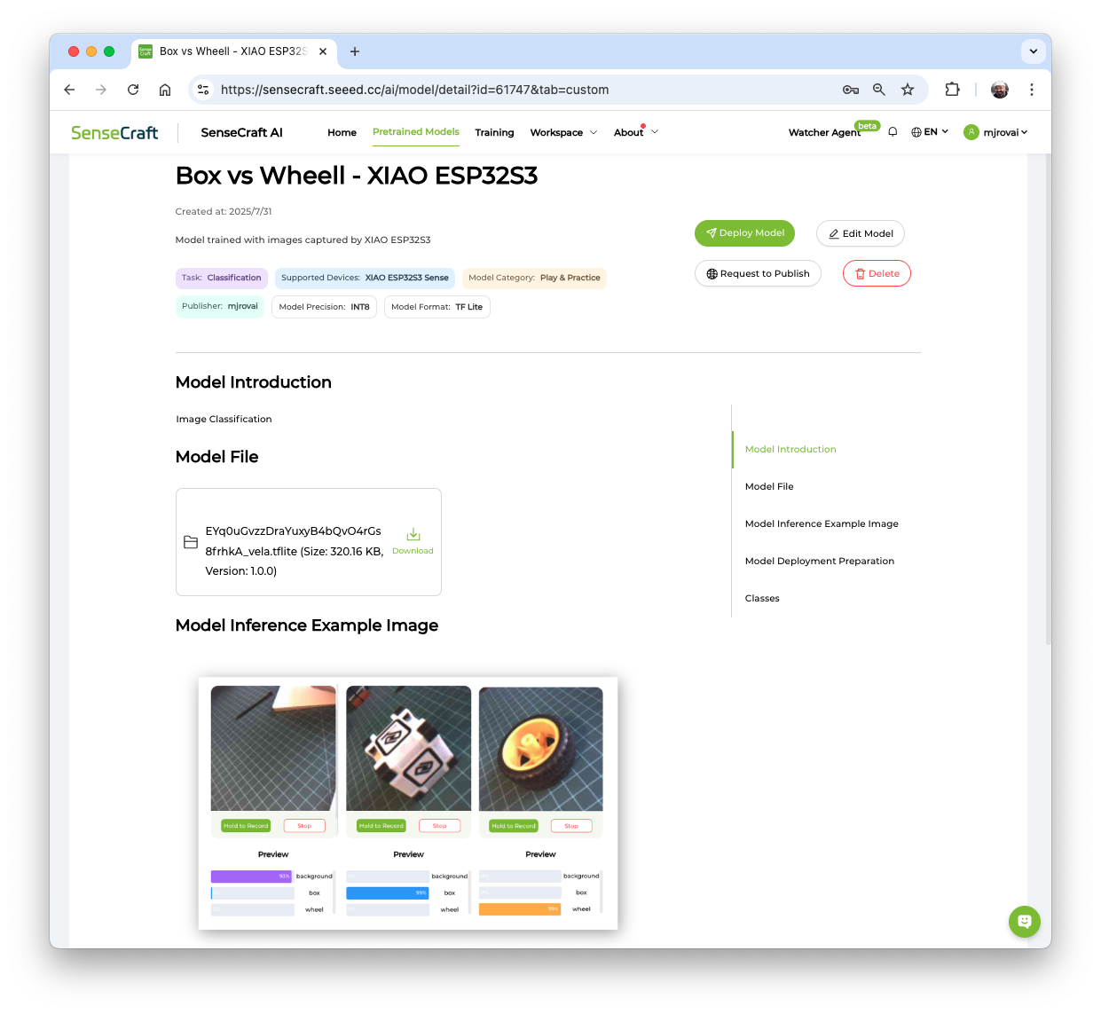 Also, the model can be deployed again to the device at any time. Automatically, the Workspace will be open on the SenseCraft AI.