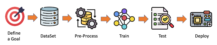 Let’s create a simple Image Classification project using SenseCraft AI Studio. Below, we can see a typical machine learning pipeline that will be used in our project.