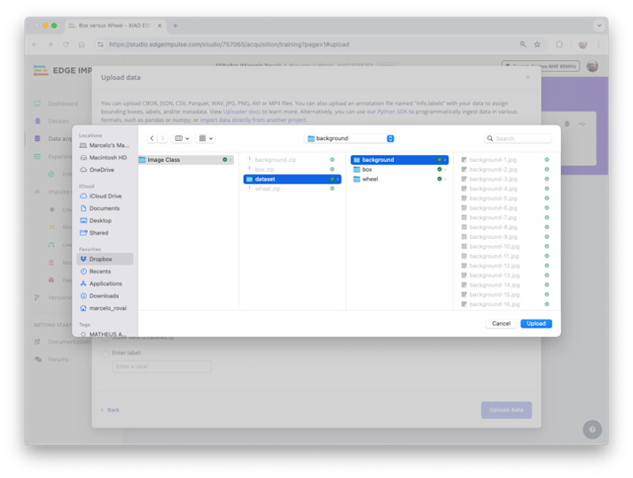 Repeat the procedure for all classes. Do not forget to change the label’s name. If you forget and the images are uploaded, please note that they will be mixed in the Studio. Do not worry, you can manually move the data between classes further.