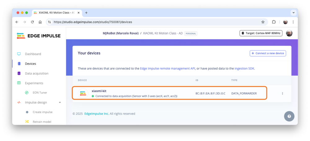 In this lab, we will connect the Kit directly to the Edge Impulse Studio, which will also be used for data pre-processing, model training, testing, and deployment.