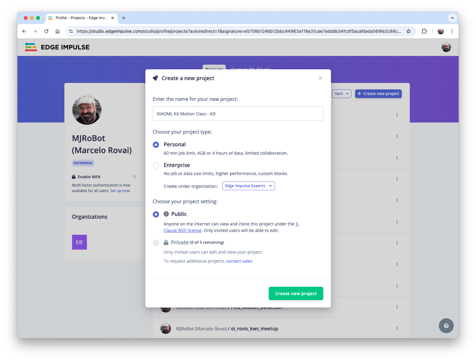 - Edge Impulse Project
