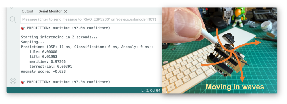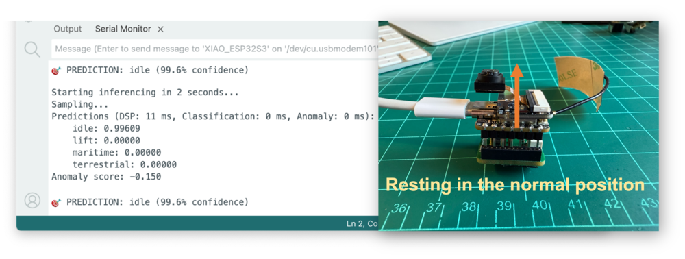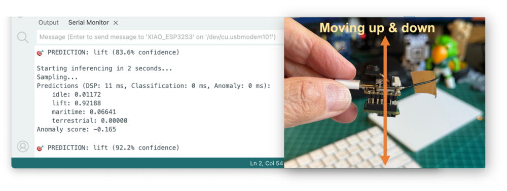 And, of course, some “anomaly”, for example, putting the XIAO upside-down. The anomaly score will be over 0.5: