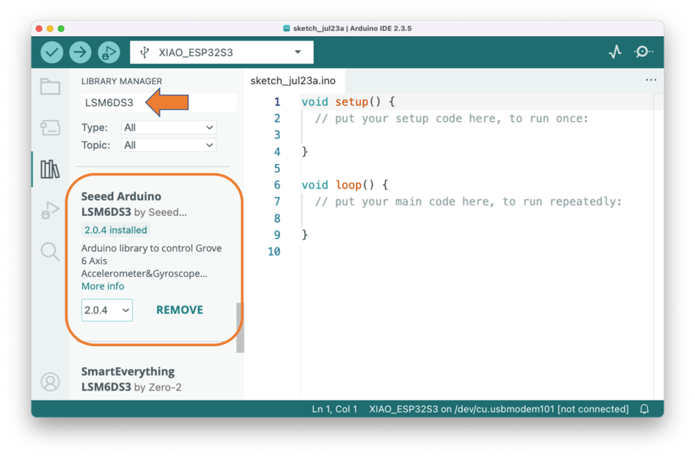 Open the Arduino IDE and select the “Manage Libraries” (represented by the