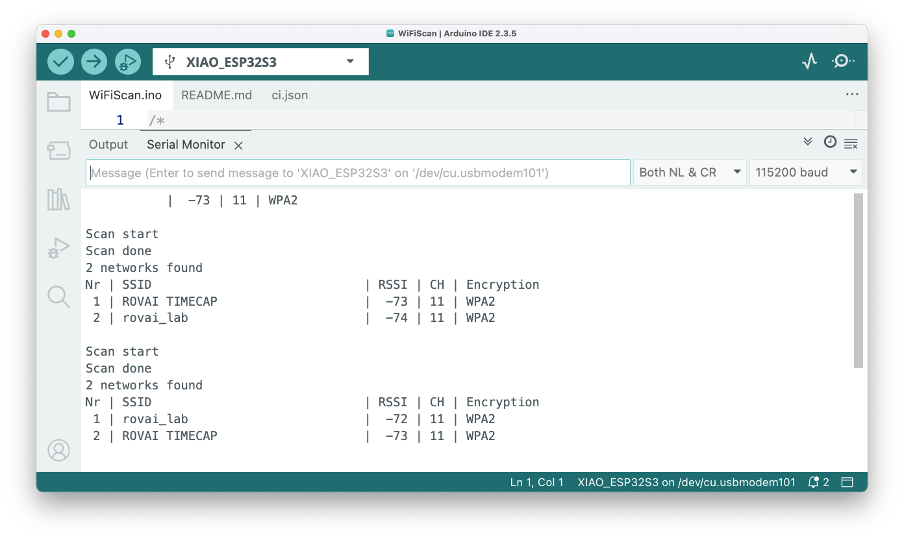 Let’s start with sound detection. Enter with the code below or go to the GitHub project and download the sketch: XIAOML_Kit_Mic_Test and run it on the Arduino IDE: