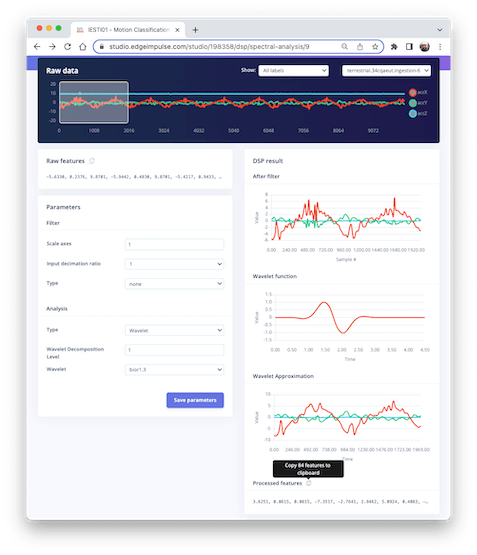 Clone the public project. You can also follow the explanation, playing with the code using my Google CoLab Notebook: Edge Impulse Spectral Analysis Block Notebook.